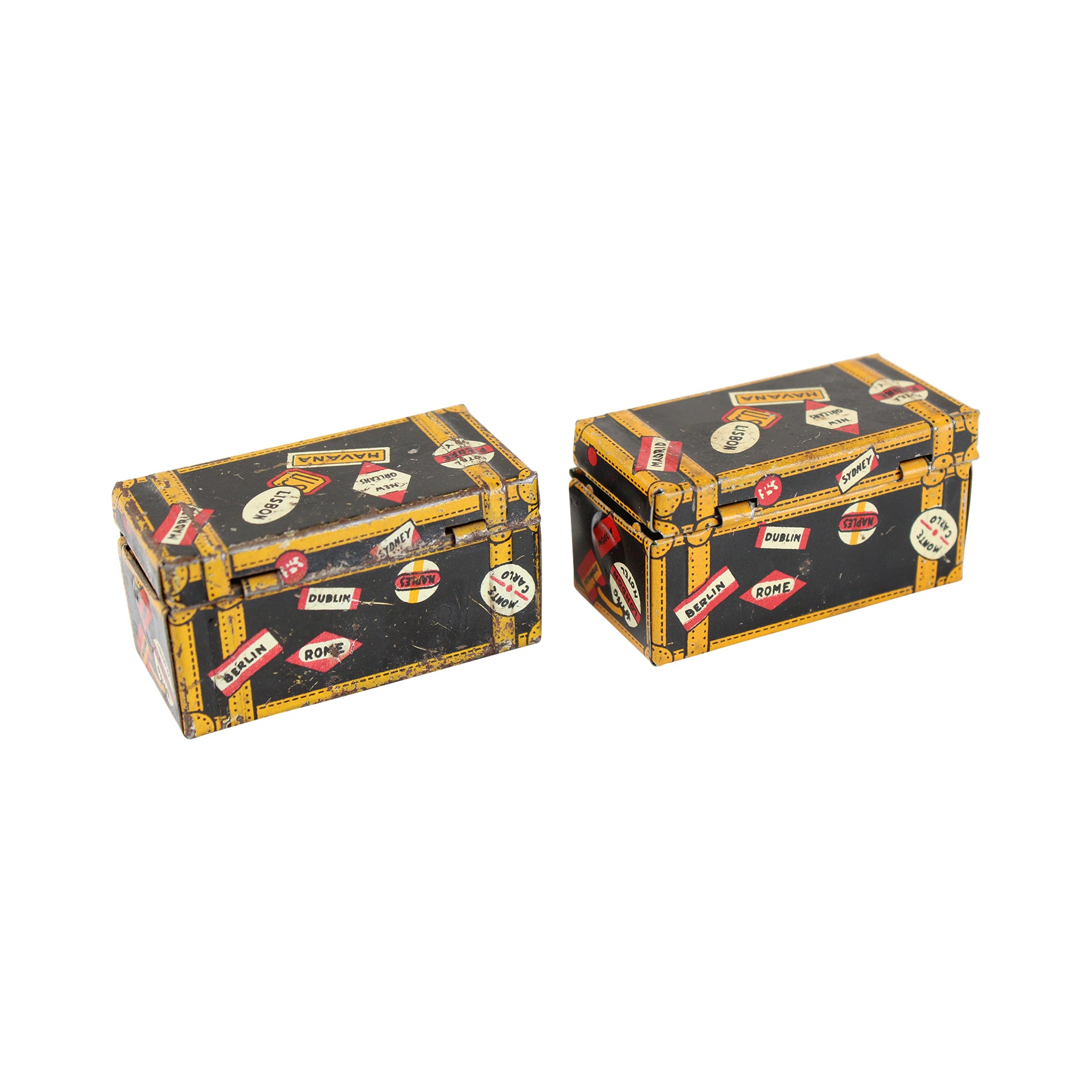 2- 1930's Louis Marx Tin Litho Steamer Trunks 'O' Gauge Glendale Depot