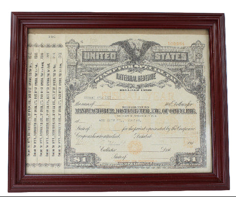 Framed 1918 Internal Revenue Special Tax on Manufacturing & Distributing Opium