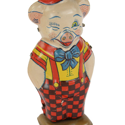 Vintage 1940's J. Chein Tin Litho Wind-Up Toy Pig (Wind-Up Not Properly Working)