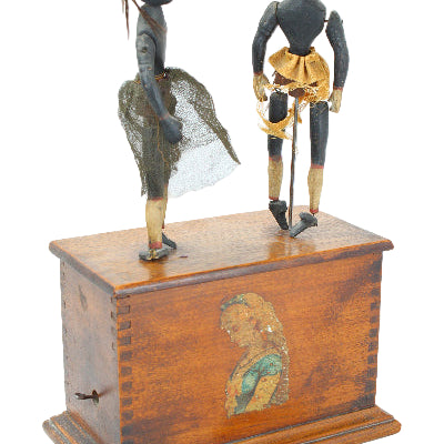 Antique Black African Man Hand Puppet- Carved Wood Head With Original Clothing