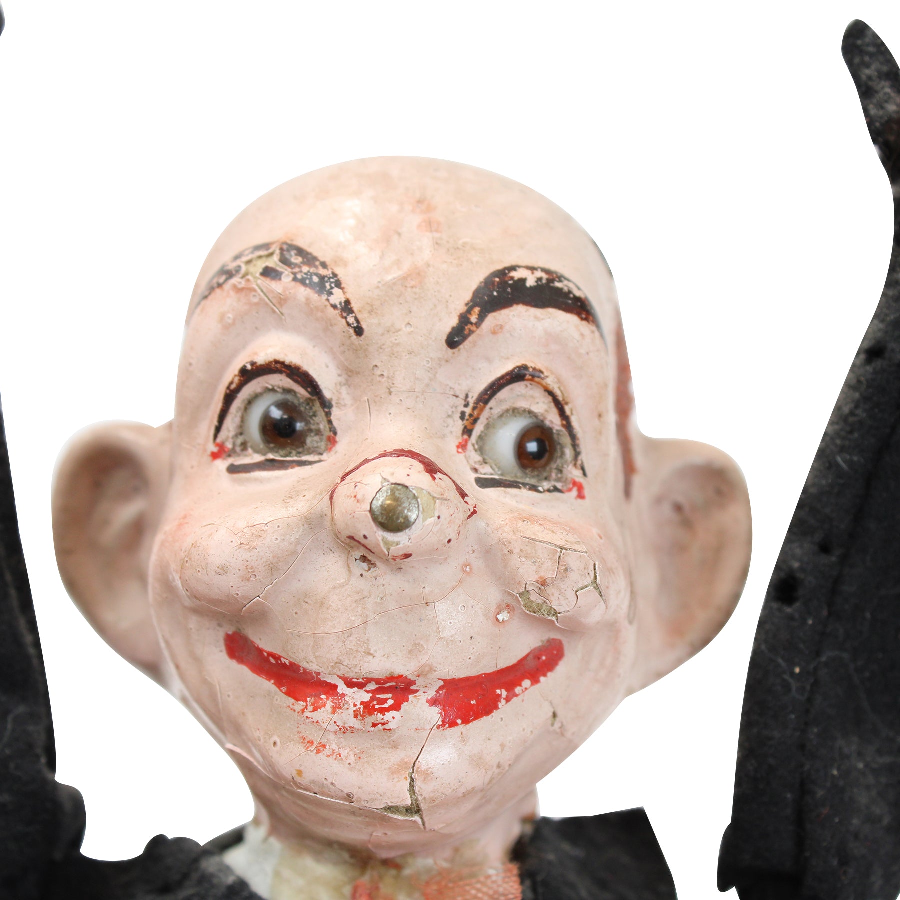 Antique 33-1/2" Tall Hand Carved Wooden Devil Puppet With Iron Control Rods