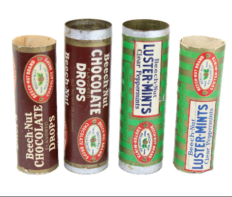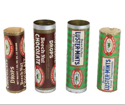 2 - 1920's Beech-Nut Metal Tubes of Chocolate Drops & Lister-Mints