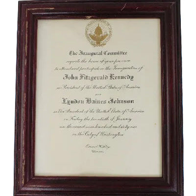 Framed John F. Kennedy & Lyndon Johnson 1961 Official Presidential Inaugural Invitation