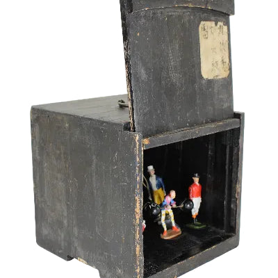 Circus Folk Art - 6 Circus Lead Figures (England) Inside a Sliding Panel Antique Wood Box