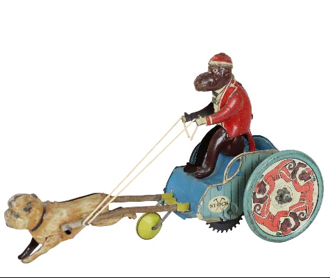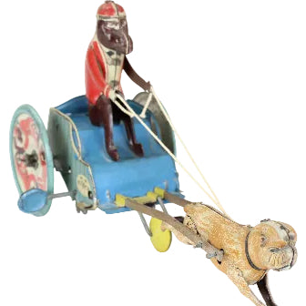 Rare Tin-Letho(DRGM) Wind-Up "Jolly-Pals" Monkey on a Cart Pulled by a Pug