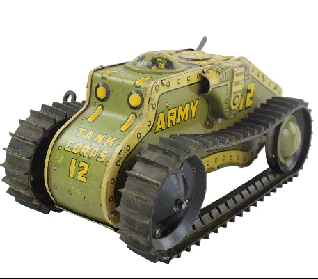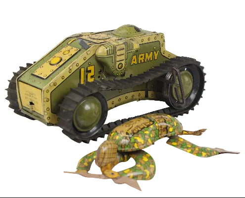 2 Tin-Litho Wind-Ups: Marx Tank Corps No. 12 & Ohio Art "Commando Joe" Crawling Soldier