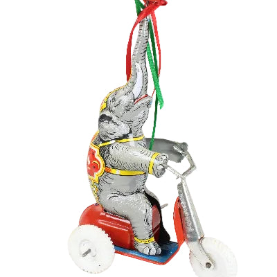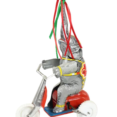 U.S. Zone Germany Tin-Litho Wind-up Elephant on Tricycle with Spinner