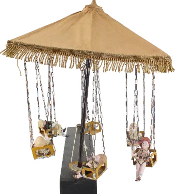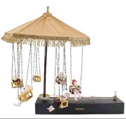 1930's German Musical Manivelle Six Swing Carousel Automation Toy