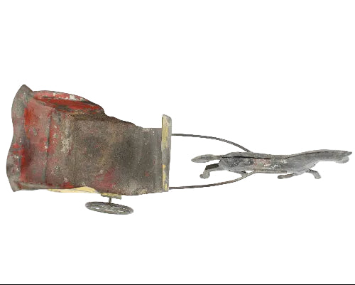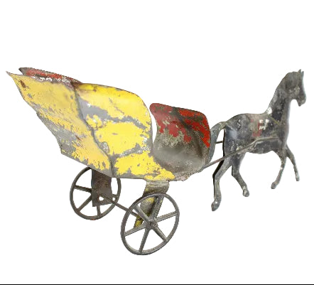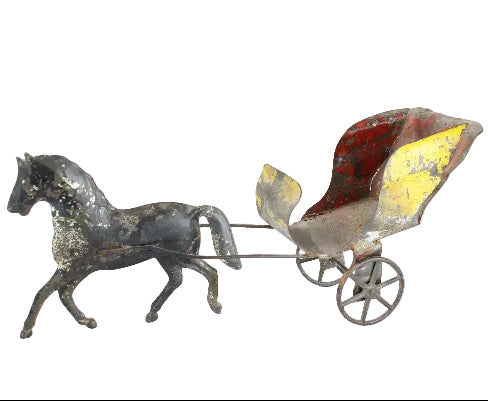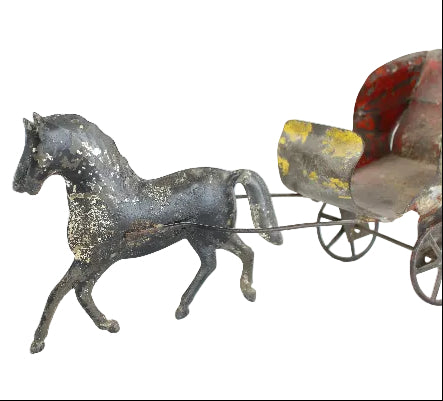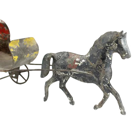 This somewhat rare and highly collectable tin carriage and horse measures 9" in length.