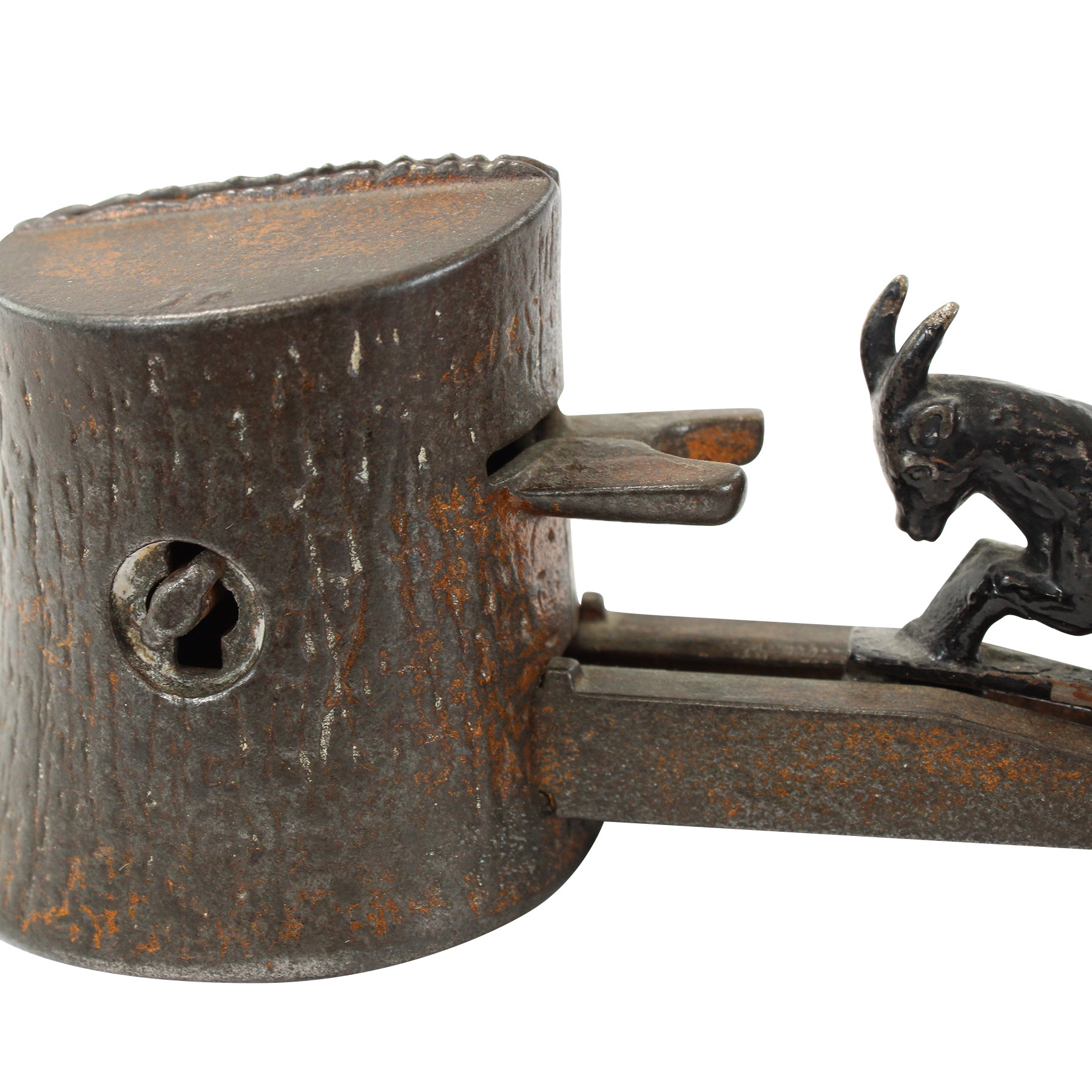 1885 Judd Company "Butting Goat Tree Stump" Cast Iron Mechanical Bank