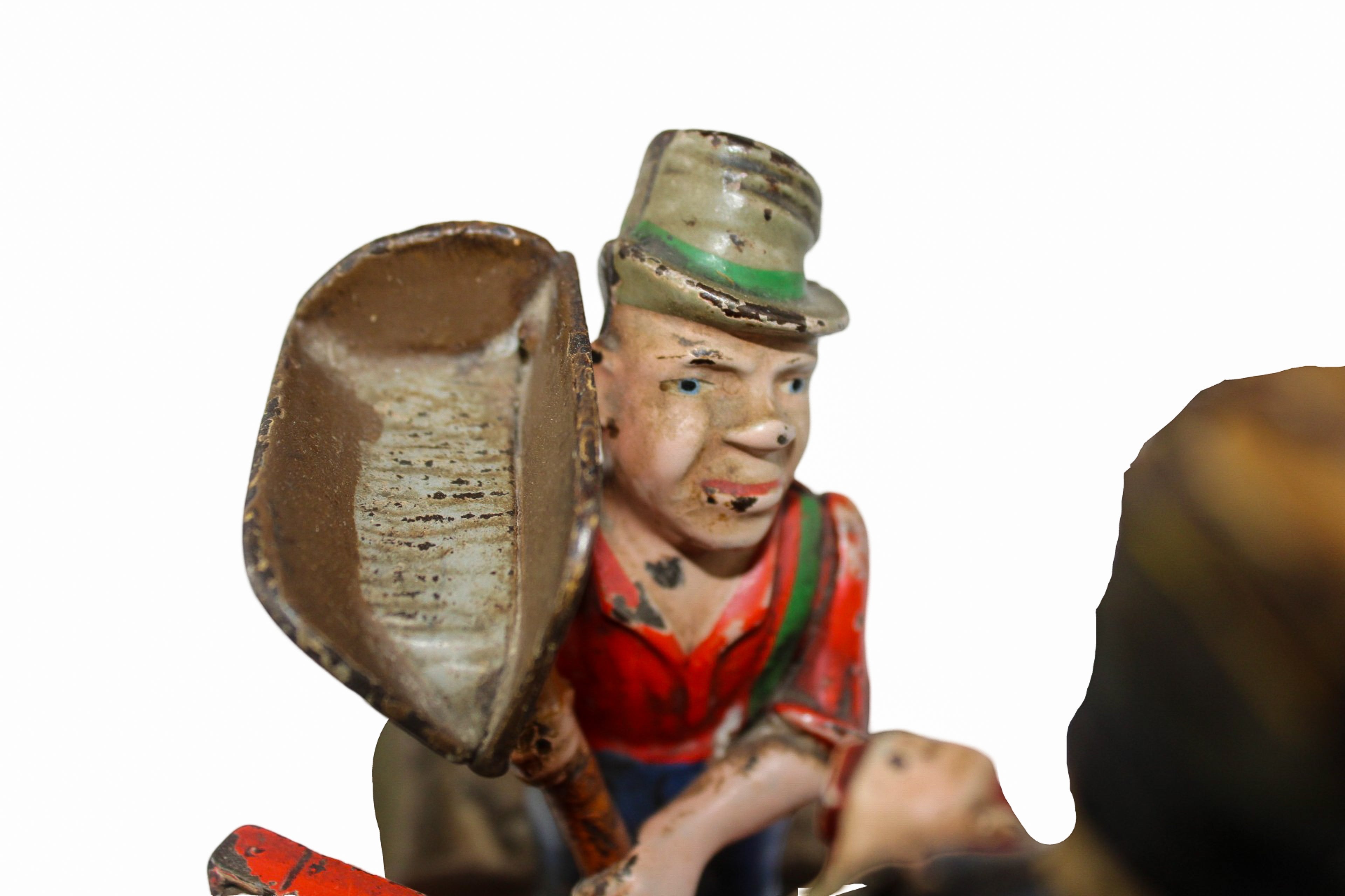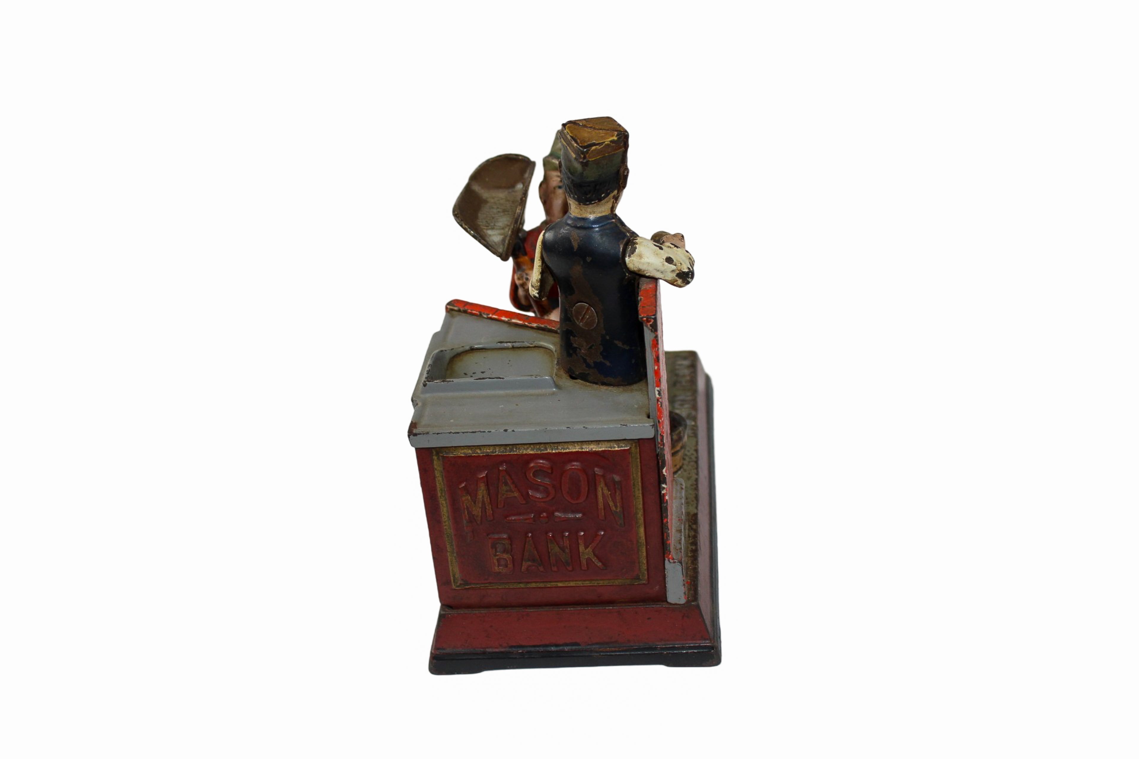The original coin cover is in place, but no key is present. A Mason mechanical bank is a wonderful addition to any collection and in our opinion is Shepard Hardware's best.