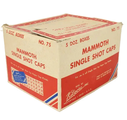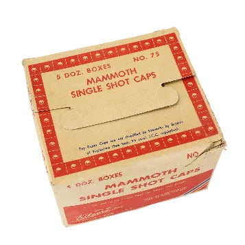 These hard-to-find single-shot Mammoth No. 75 caps (manufactured by Kilgore) come in the original Mammoth retailers' sixty-box carton that remains in very good condition.
