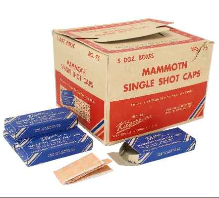 19 Boxes of Kilgore's Old Mammoth No. 75 Single Shot Caps in Original Retailers 60-Box Cardboard Case
