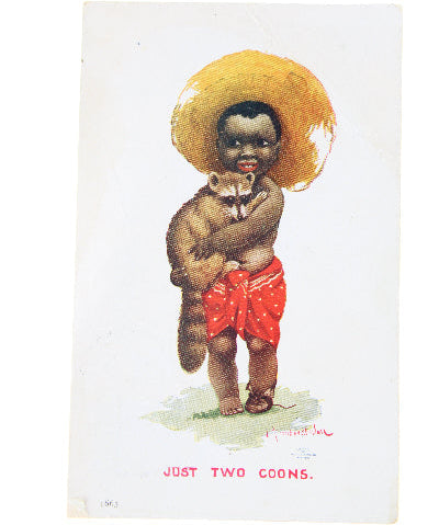 This very good condition postcard titled "Just Two Coons" was printed by Ullman Manufacturing Company of New York.