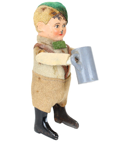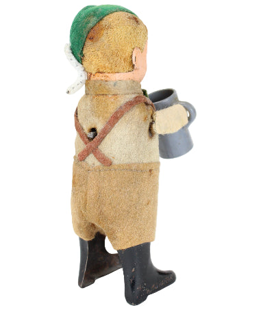 1920's - 1930's Schuco Wind-Up Beer Drinking Boy with Felt Outfit
