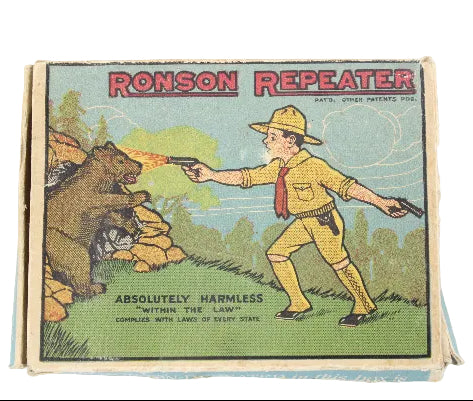 1922 Patented Ronson Repeater Toy Spark Flash Gun with Box