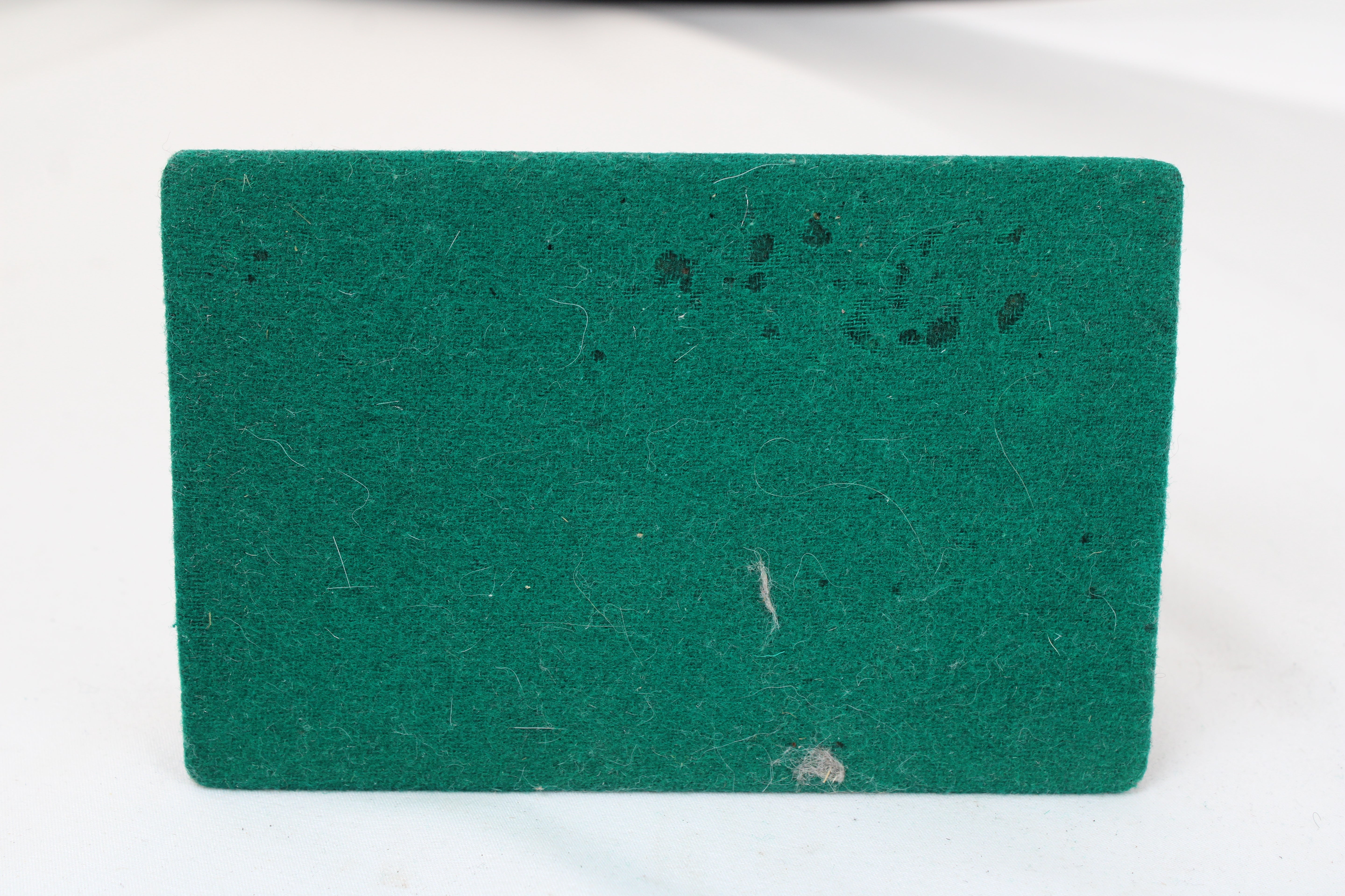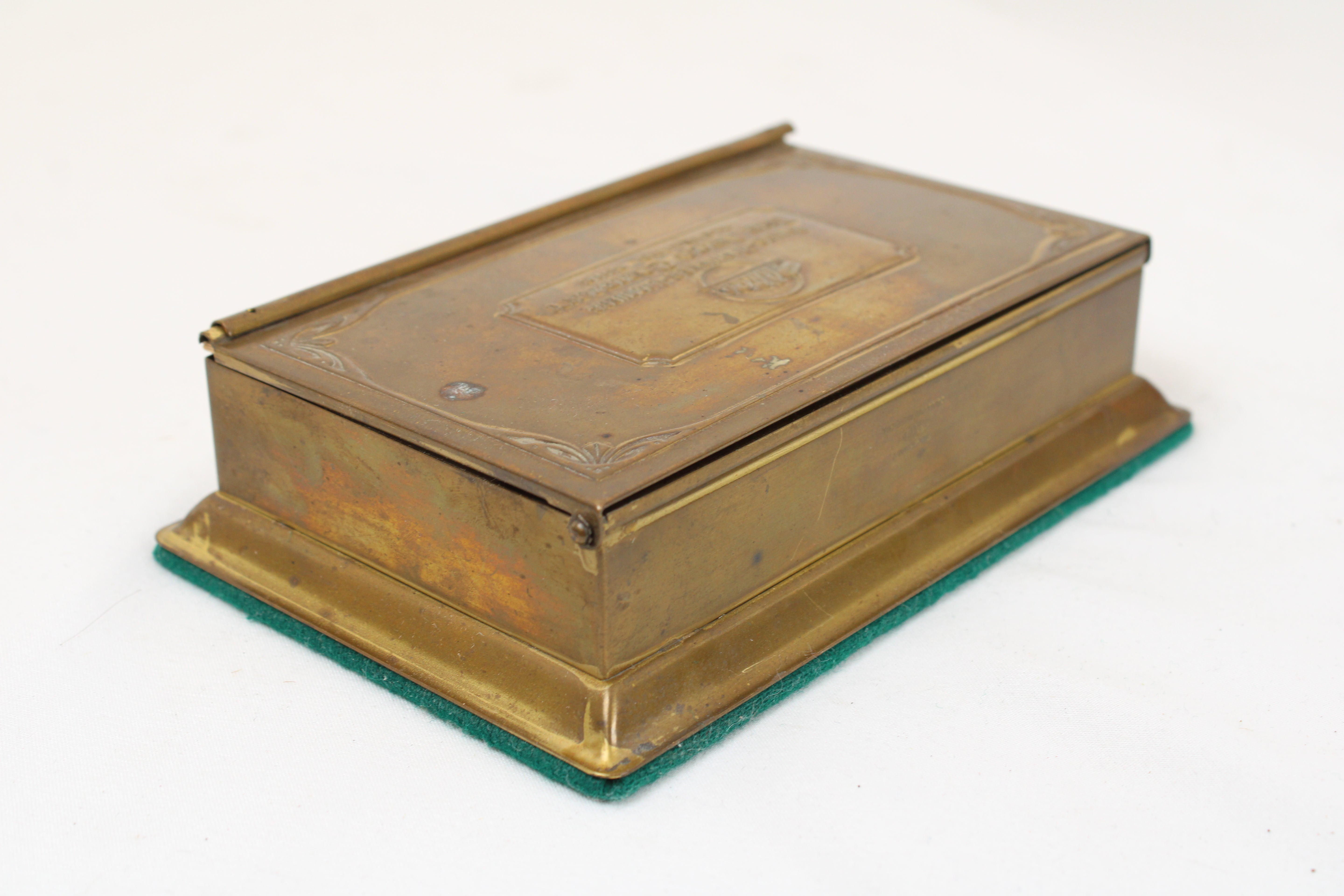 The hinged covered brass box is in very good condition with the original green felt bottom.