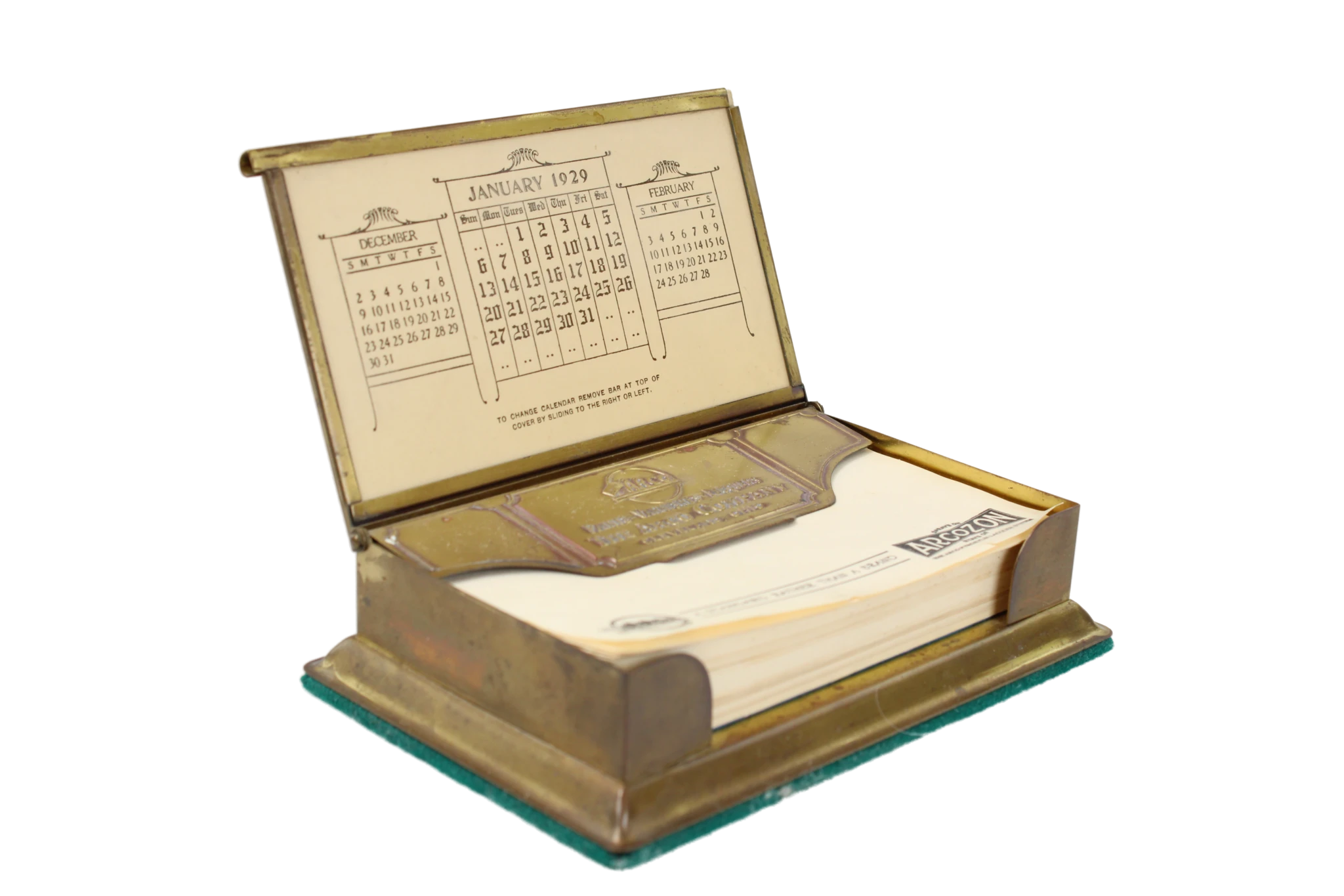 1929 (Great Depression) Executive Brass Desk Calendar & Memo Pad Holder from The Arco Company