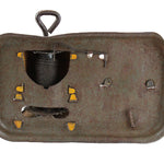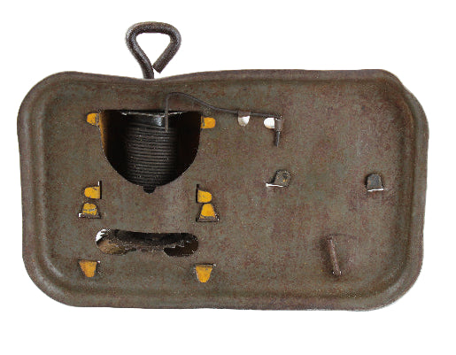 The winding mechanism worked well when tested and the grinding wheel rapidly rotated. A small piece of flint could be attached to the metal implement to create sparks as the implement touches the grinding wheel.