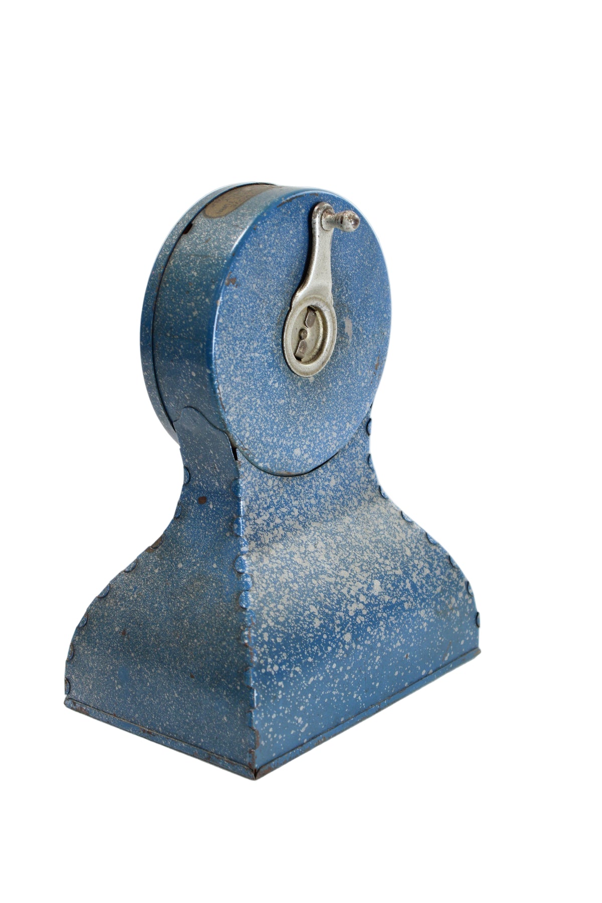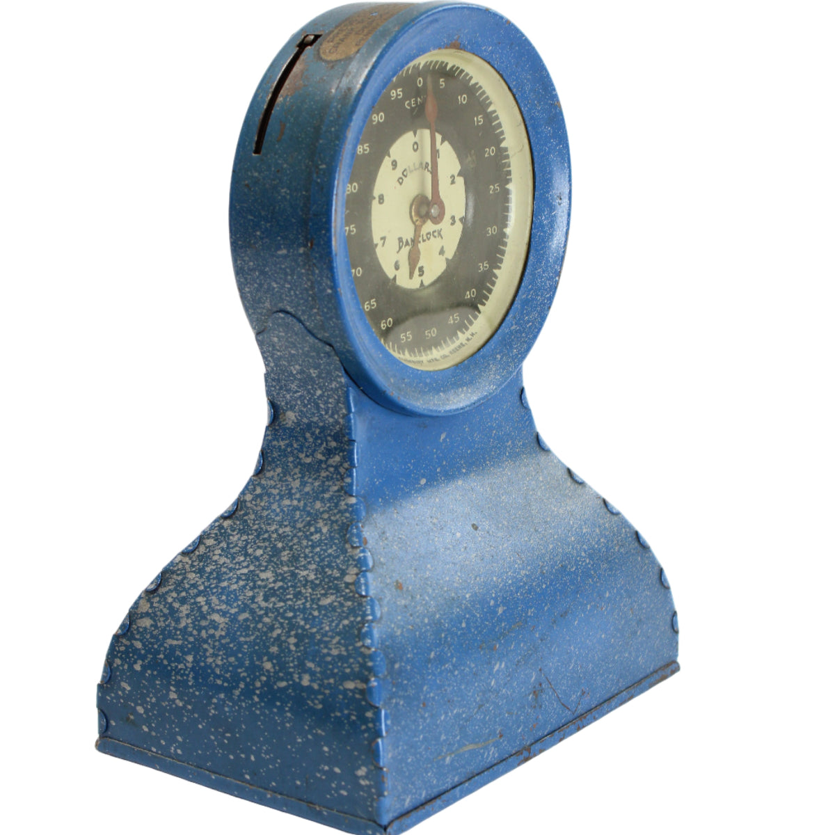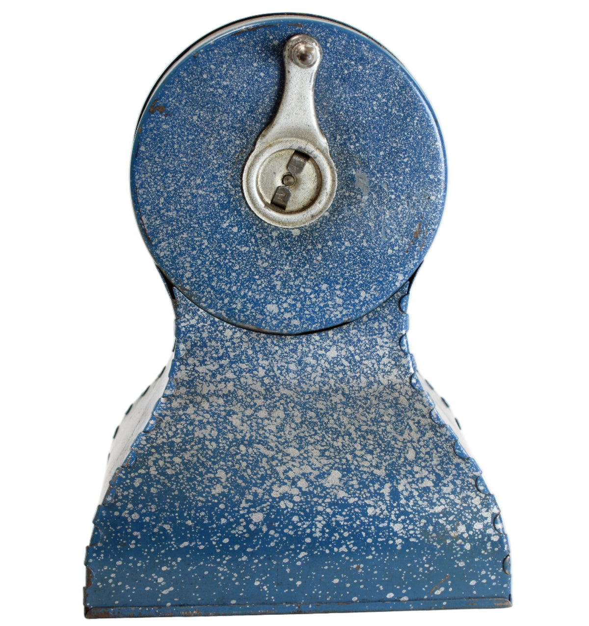 The front dial accurately counts the coin totals that have been deposited in the bank. Place a coin in the slot, crank the handle, and the coin registers on the cumulative count dial displayed on the front.
