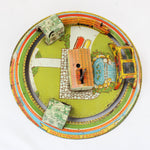 The winding mechanism of this 9" diameter tin-litho train worked well when tested.