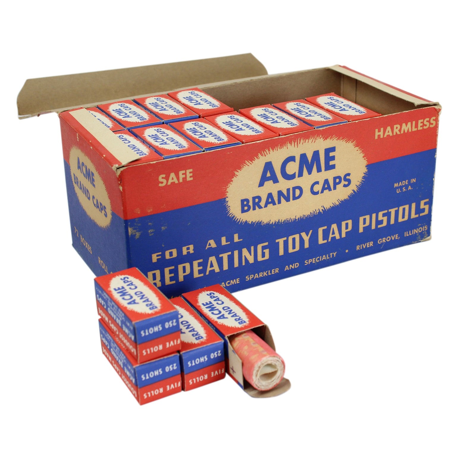 1940's - 1950's Acme Brand Caps In Case With 69 Boxes Of Caps