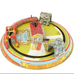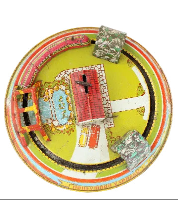 This 9" diameter tin-litho train worked well when we tested the winding mechanism.