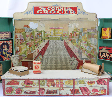 1940's Marx Wolverine Tin - Litho Corner Grocery Store with Accessories
