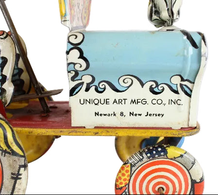 1940's Unique Art Mfg. "Artie & Jojo" Tin-Litho Wind-Up Crazy Clown Car