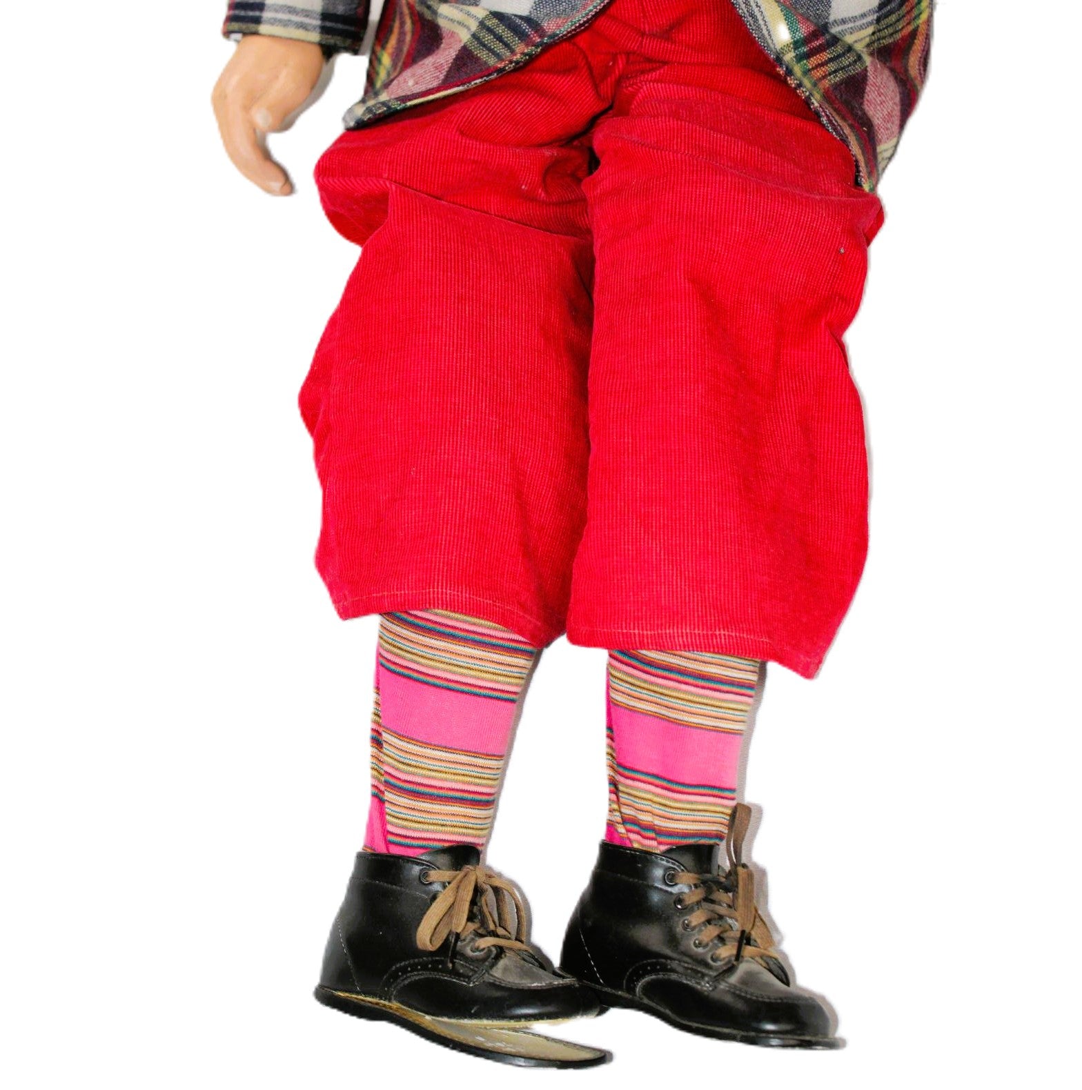 If you look at historic pictures of Edgar Bergen with Mortimer Snerd, there is no apparent difference in the custom-made head, body, face or clothing regimen with that of this doll.