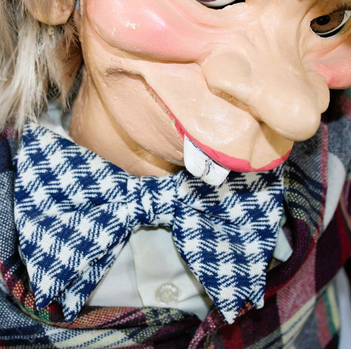 The doll has many hand controls that cause the eyes to move as they follow you and the mouth controls enable highly controlled movement.  Mortimer’s classic toothy grin and large Adam's apple make having this toothy dummy on display very special.