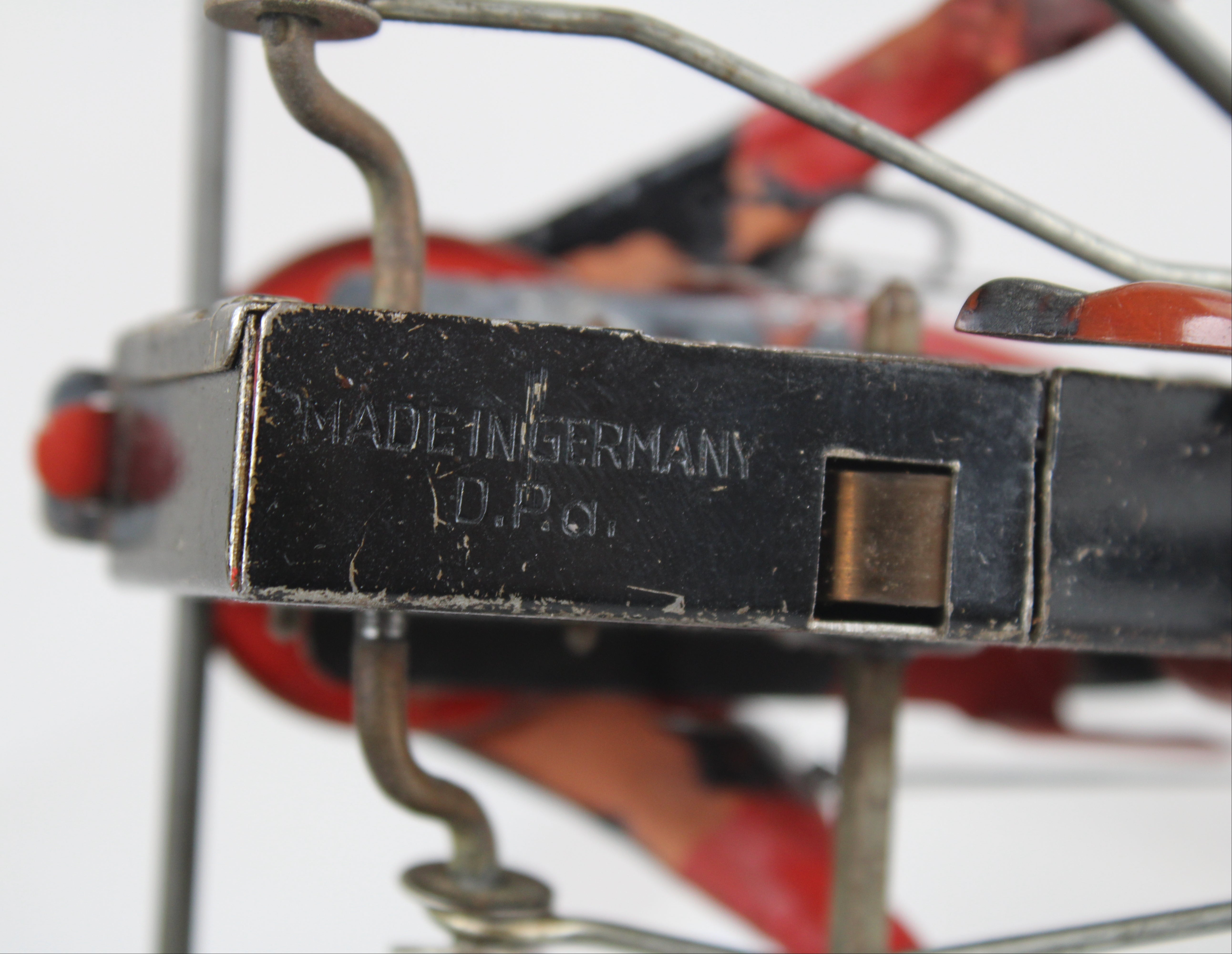 The 6-1/2" long piece moves like new when wound. The jockey is still holding the reins and his whip is present.