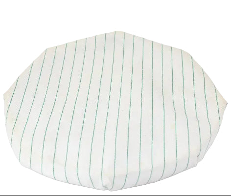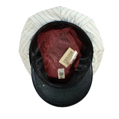 This beautiful condition 6-3/4 size Coca-Cola driver's hat was surprisingly well made of heavy green striped fabric, a strong metal head frame, leather, silk headliner, petten leather visor, and blue corded braid.