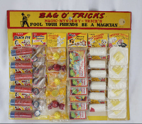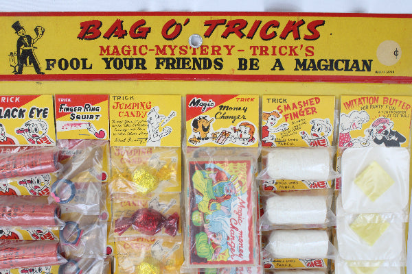 1950's Bag O' Tricks Original Retail Store Card Display with 6 Trick Items of 6 Each