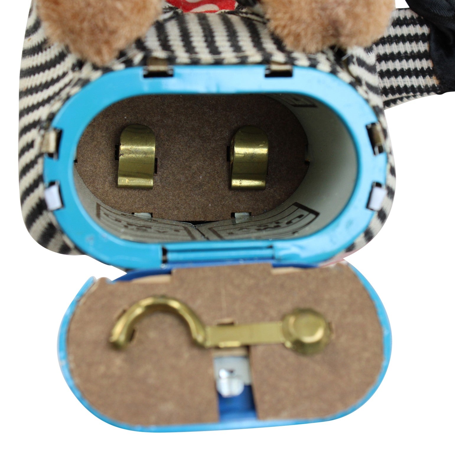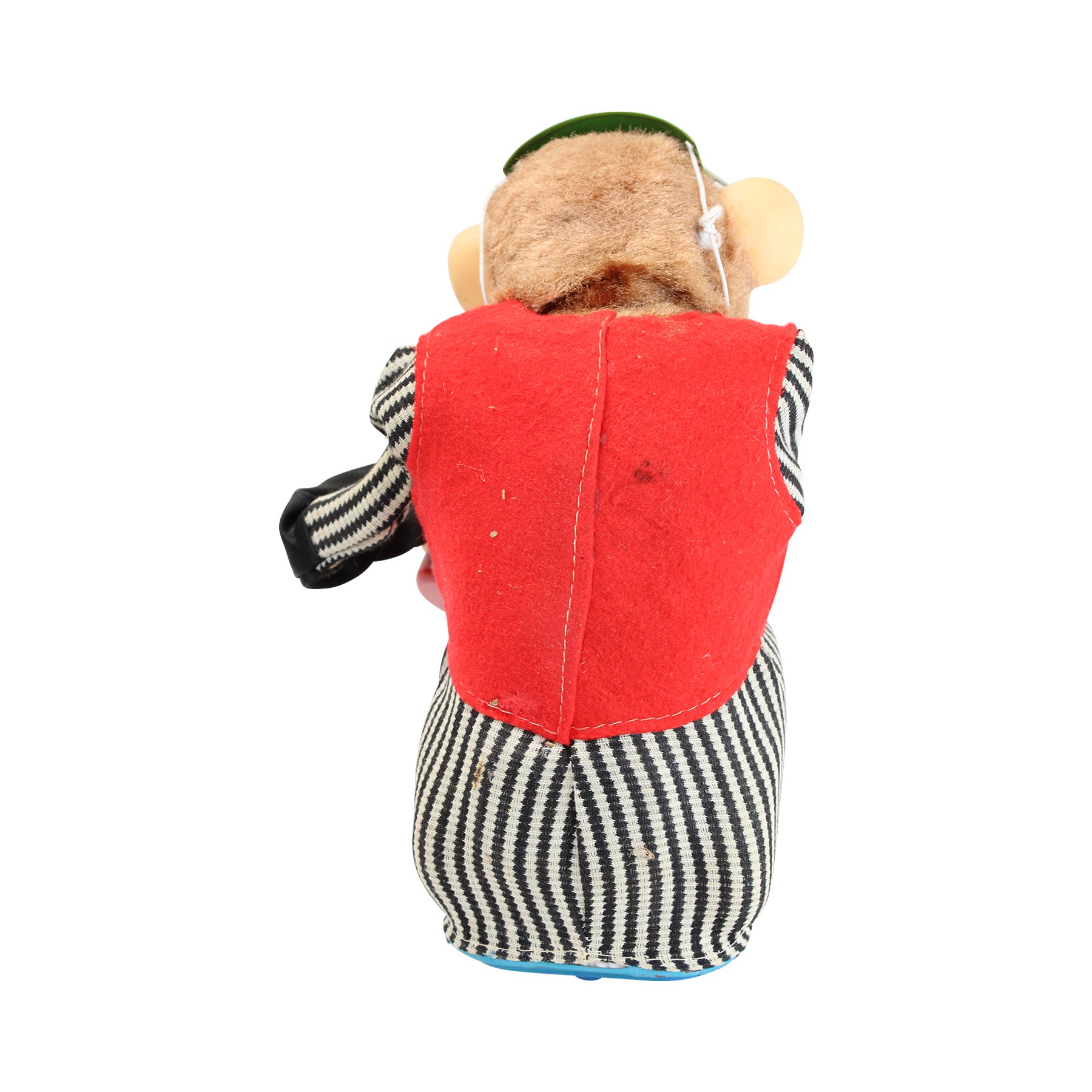This great 9" tall chimp is in excellent condition in terms of appearance and completeness. Unfortunately, when we tested the toy with new batteries, we still could not get the monkey started despite a clean battery compartment.