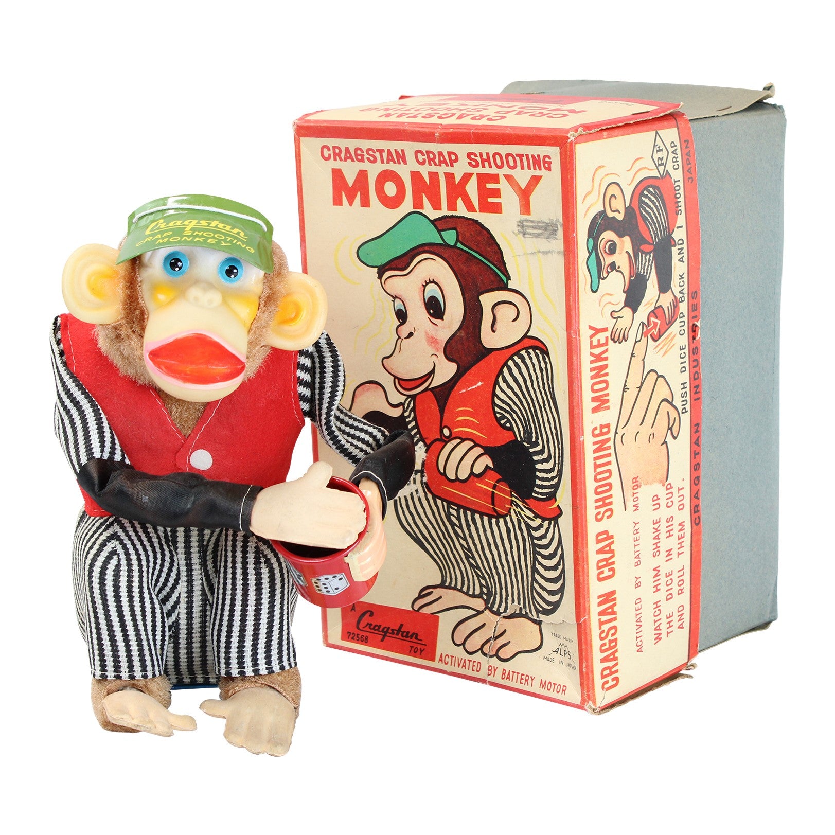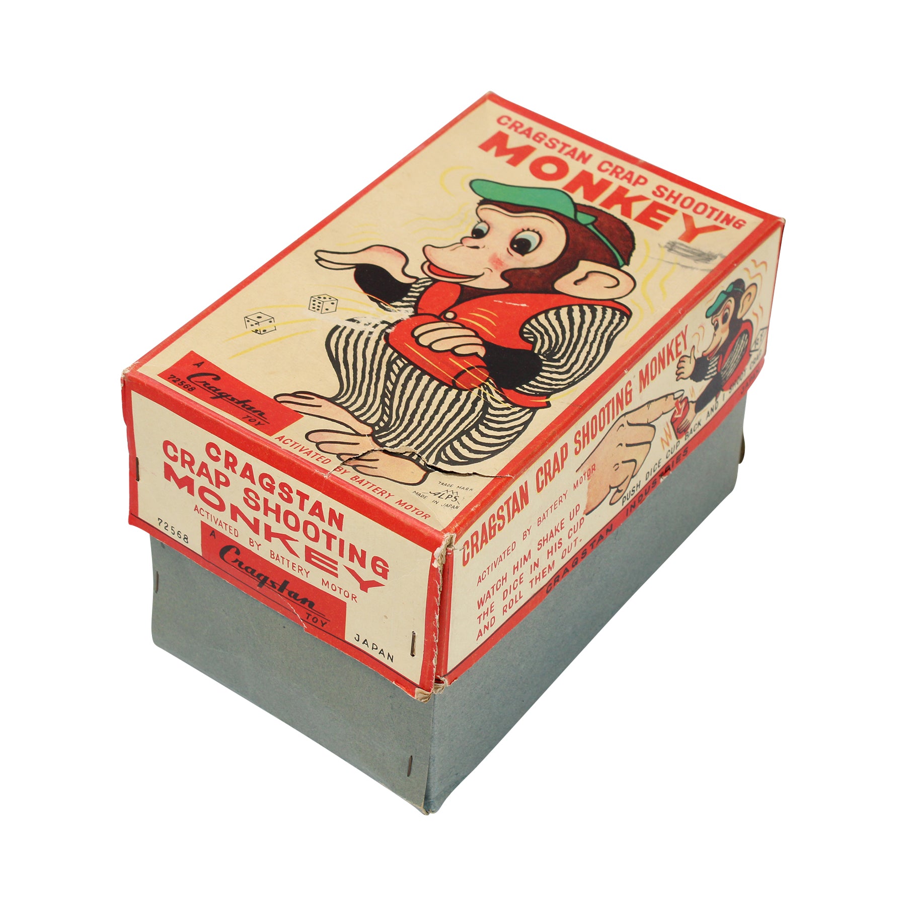 1950's Cragstan Crap Shooting Battery Operated Monkey With Original Box (Not-Working)