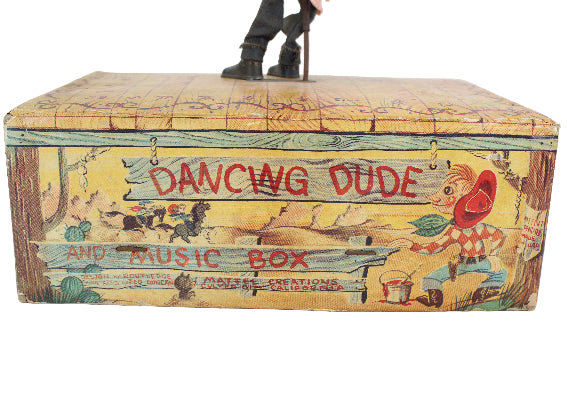 1950's Mattel Dancing Dude Cowboy Musical Hand Crank Box