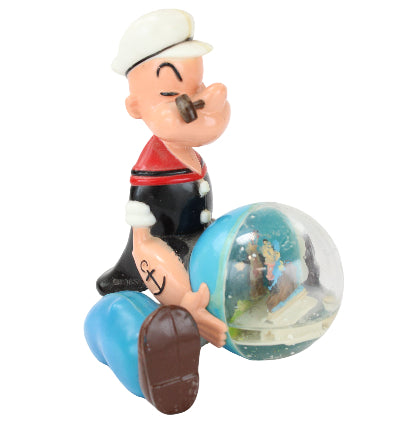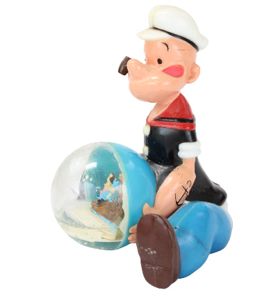 This charming 5-inch vintage Popeye snow globe brings together the beloved cast of Olive Oyl, Wimpy, and Swee’Pea in a classic mid-century display.