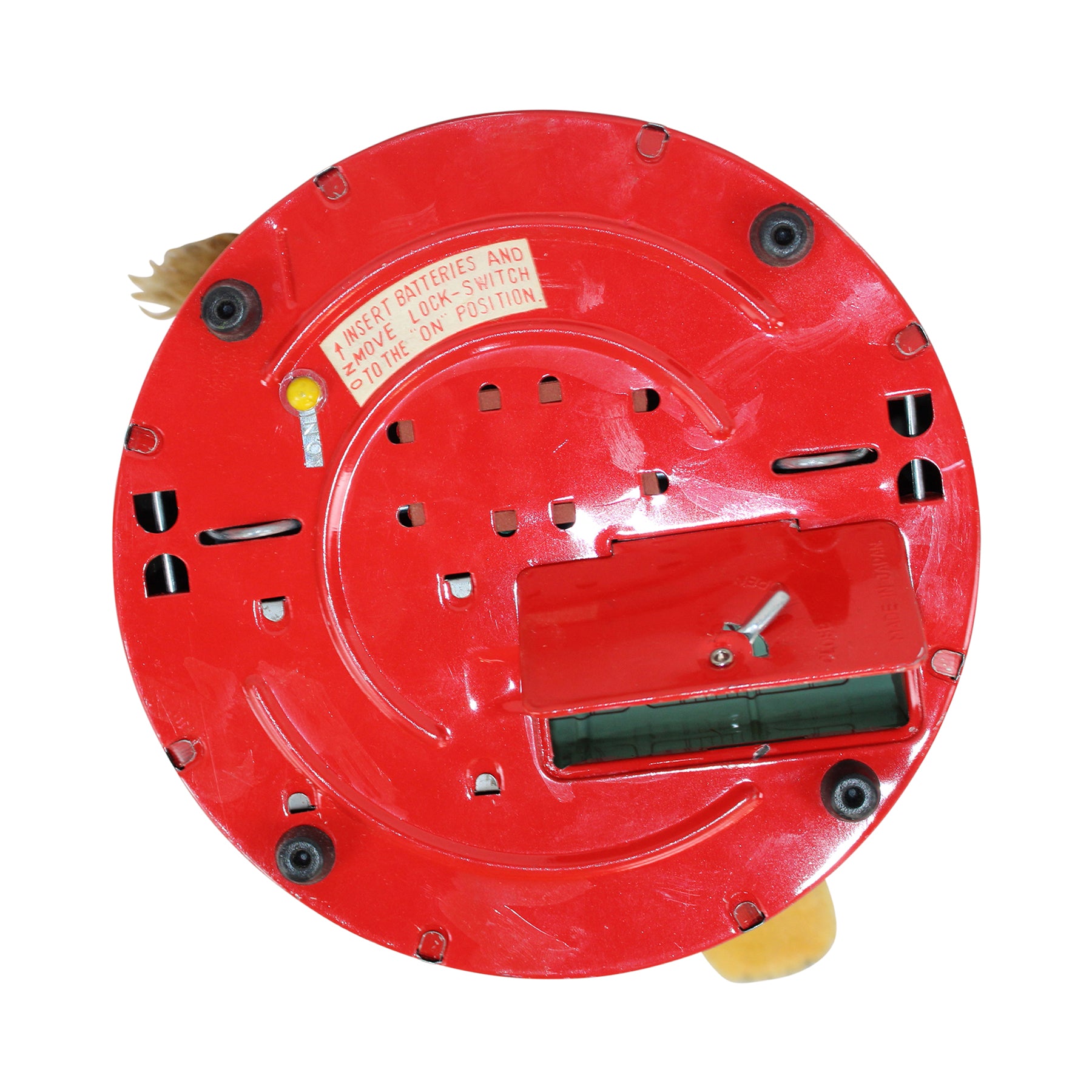 This 9 1/2" tall lion with tin litho base in in very good condition, and as such, we were very disappointed when we tested the King of the Jungle and could not get the toy to work despite the battery compartment being clean.