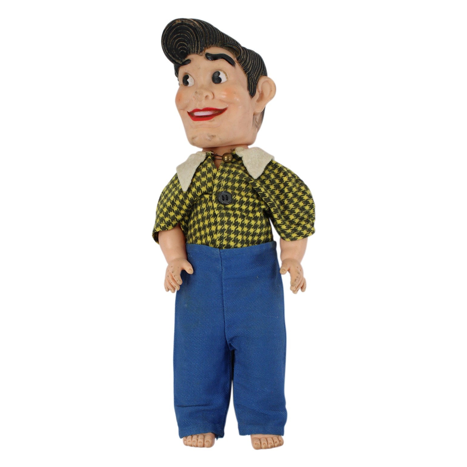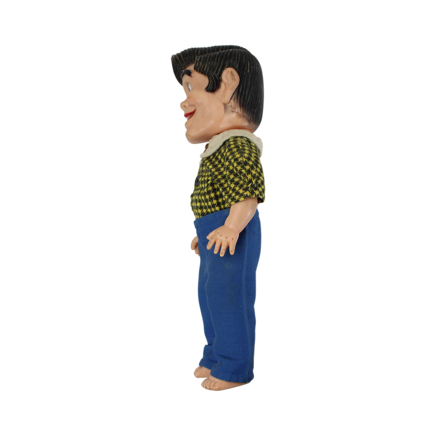 This great 13" tall vinyl doll is in very good condition. The flannel shirt and corduroy pants are in excellent shape, revealing no holes, soiling or tears.