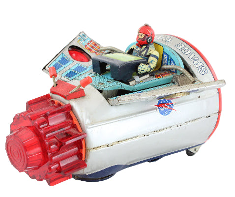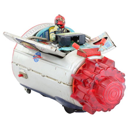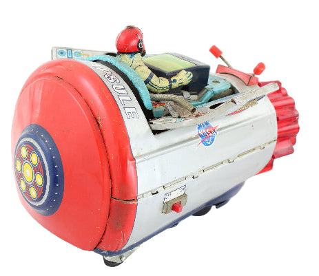 In the current non-working condition, the space capsule displays well, and the price of this item is less than 1/3 of what a working capsule would sell for. We are hoping that a would-be rocket scientist can try to get this Japanese tin working.