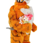This great striped Louis Marx feline measures 8" tall. When wound, the Tiger walks (via rolling wheels), spins its head, and moves two paws up and down while a purring sound is made.