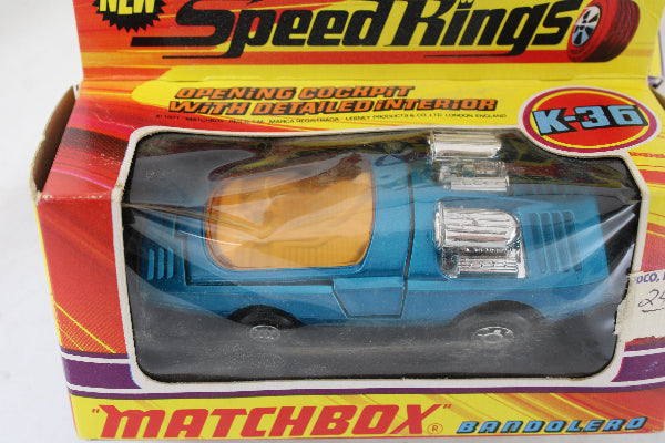 1972 Matchbox Speed Kings K-36 Bandolero – a striking racing car from the early ’70s, featuring detailed decals and vibrant paint.