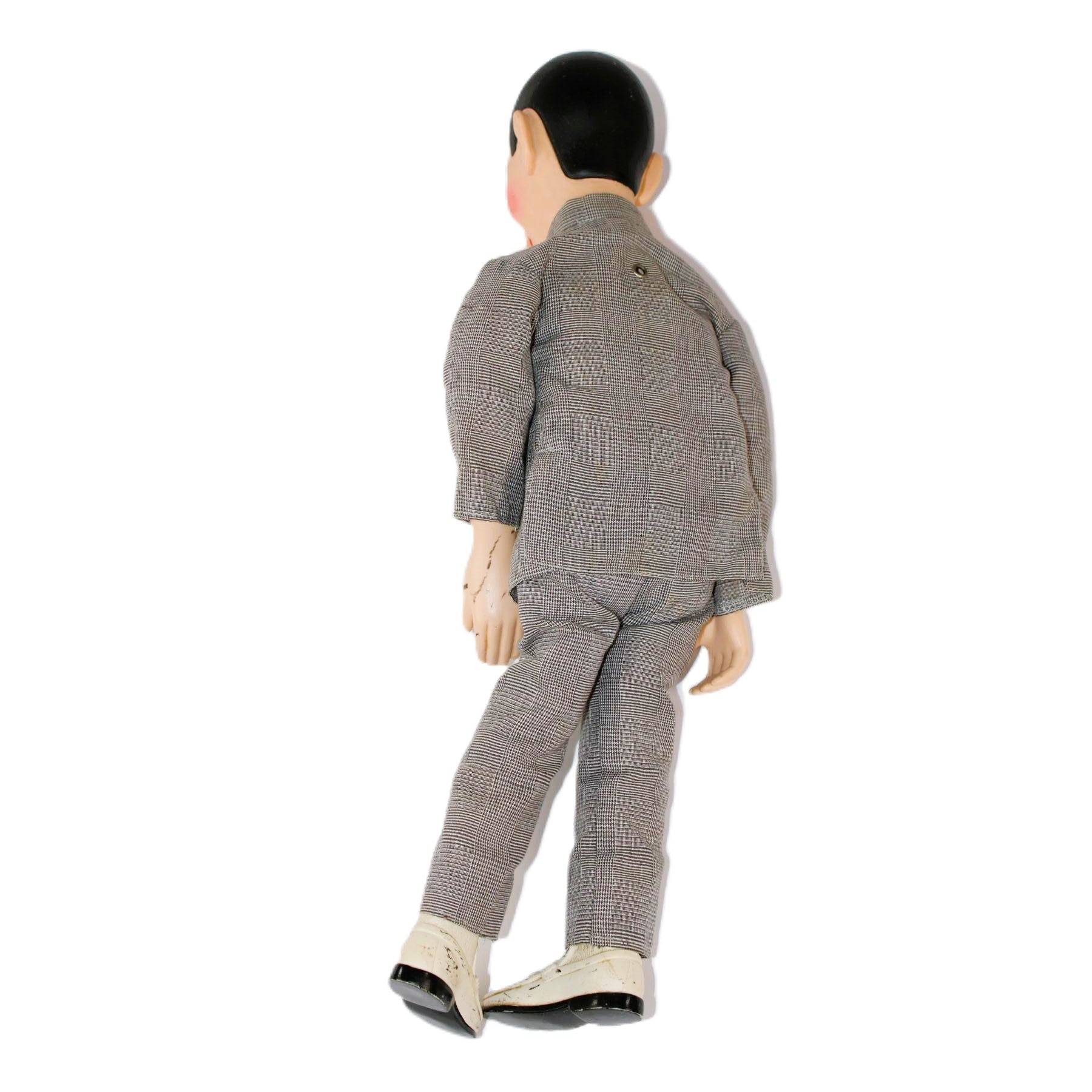 The actor that played Pee-Wee Herman was Paul Reuben who passed away in July 2023 at the age of 70. The doll is in good condition with the clothing in good shape with the exception of some black marker ink on his left arm. What is not working is the doll’s Pee-Wee voice box and the missing pull string makes trying to get the doll to talk hopeless.
