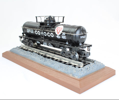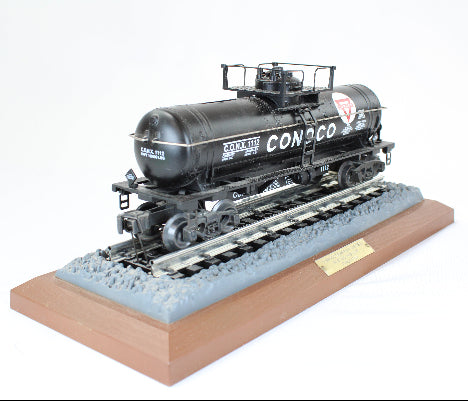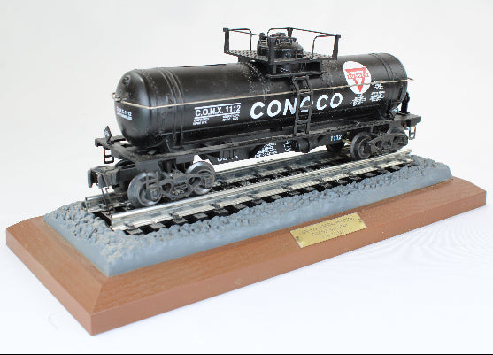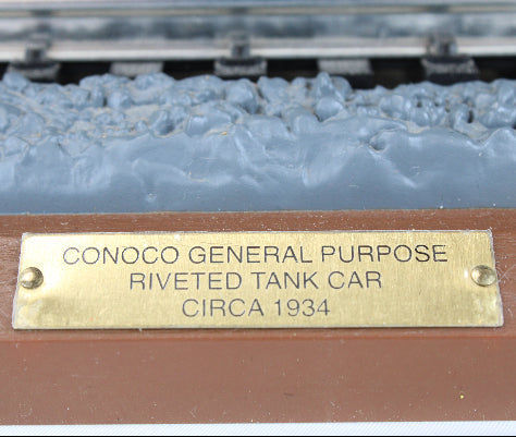 1994 Conoco Riveted Single Dome Tank Car Bank (Model Of 1934 Railroad Car) with Track & Plaque