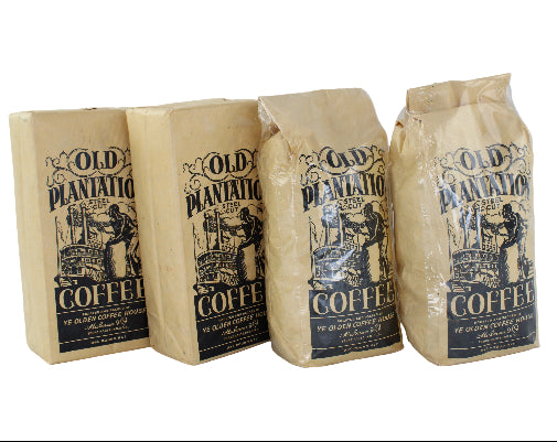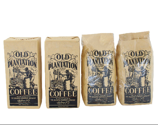 2 - 1 Lb. Packages of Old Plantation Coffee Beans with Labels & 2 - Additional Labels