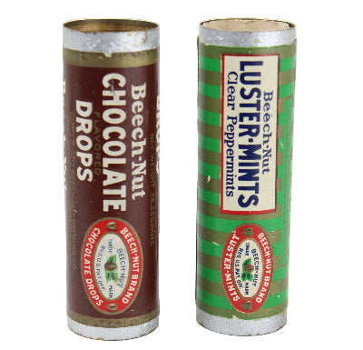 2 - 1920's Beech-Nut Metal Tubes of Chocolate Drops & Lister-Mints