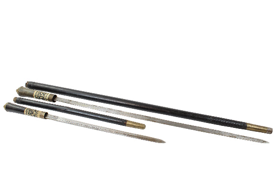 The condition of the steel swords remains very good, but a sharpening and polishing is needed to refresh the blade and remove the oxidation that has built up through the years of sitting on a shelf. We would rate these hardwood canes as being in good overall condition.