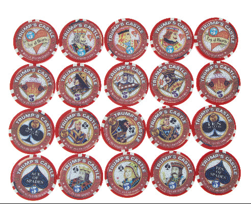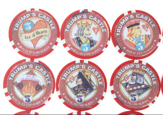 The twenty very good condition chips featuring various cards have been increasing in value because they represent a tangible memory of Trump's Atlantic City Boardwalk failure.