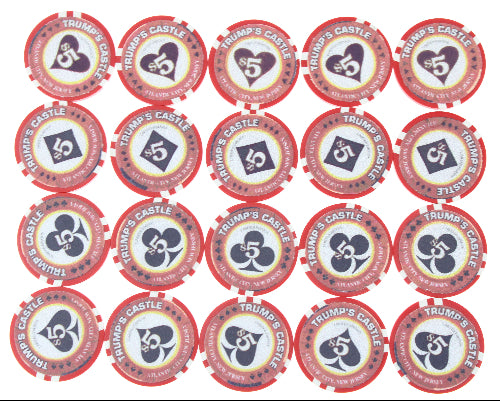 20 - 1996 Trump Castle Casino (Atlantic City) Royal Flush Series $5 Casino Chips